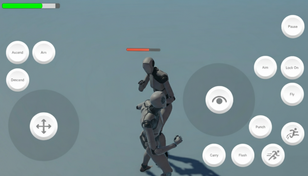 - Movement Joystick + Sprint Button - Sprint/Jet